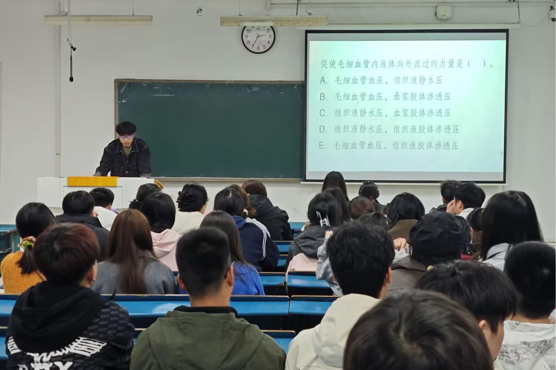 初赛以基础理论知识限时答题的方式进行,考查学生对专业知识的掌握情况。试题涉及《畜禽解剖学》《动物组织胚胎学》和《动物生理学》的相关知识,比赛过程中,选手积极认真答题,赛场气氛活跃,纪律良好,井然有序。