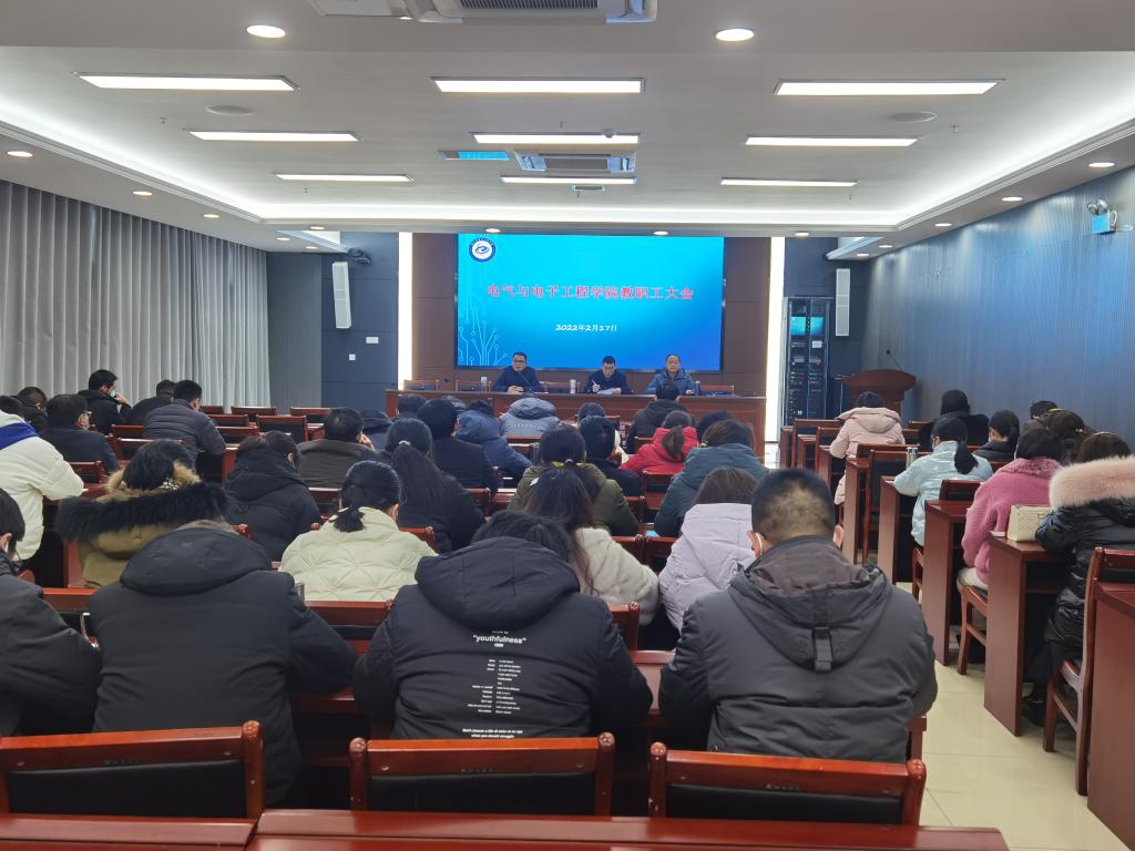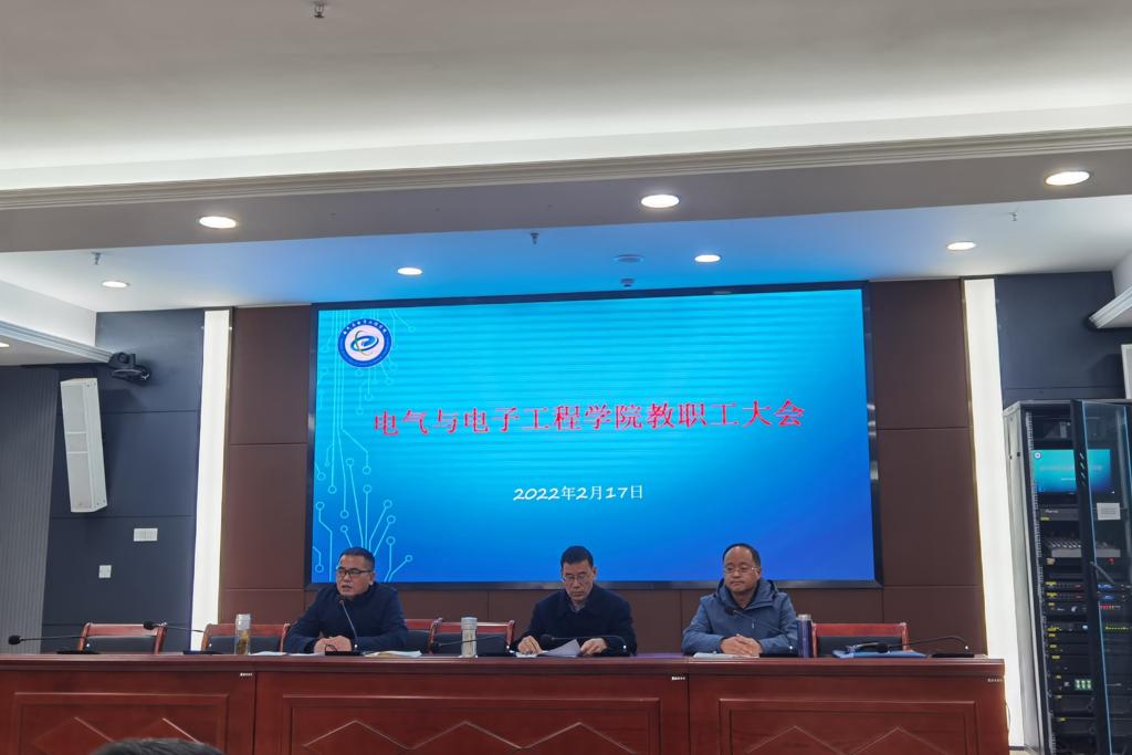 2月17日下午,电气与电子工程学院于西辅楼111会议室召开新学期全体教职工大会,学院党委书记骆海邦,党委副书记、副院长(主持工作)夏显明,党委副书记、纪委书记尚磊及全体教职工参加了会议,会议由夏显明主持。