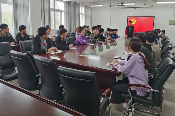 2021年4月12日中午,机械工程学院党委在学院会议室举办新发展党员入党宣誓仪式。仪式由机械工程学院党委副书记张程主持,由辅导员张立亮领誓,参加仪式的学生党支部书记和新发展的29名预备党员右手握拳举过肩头,面向鲜红的党旗,逐句庄严宣誓。