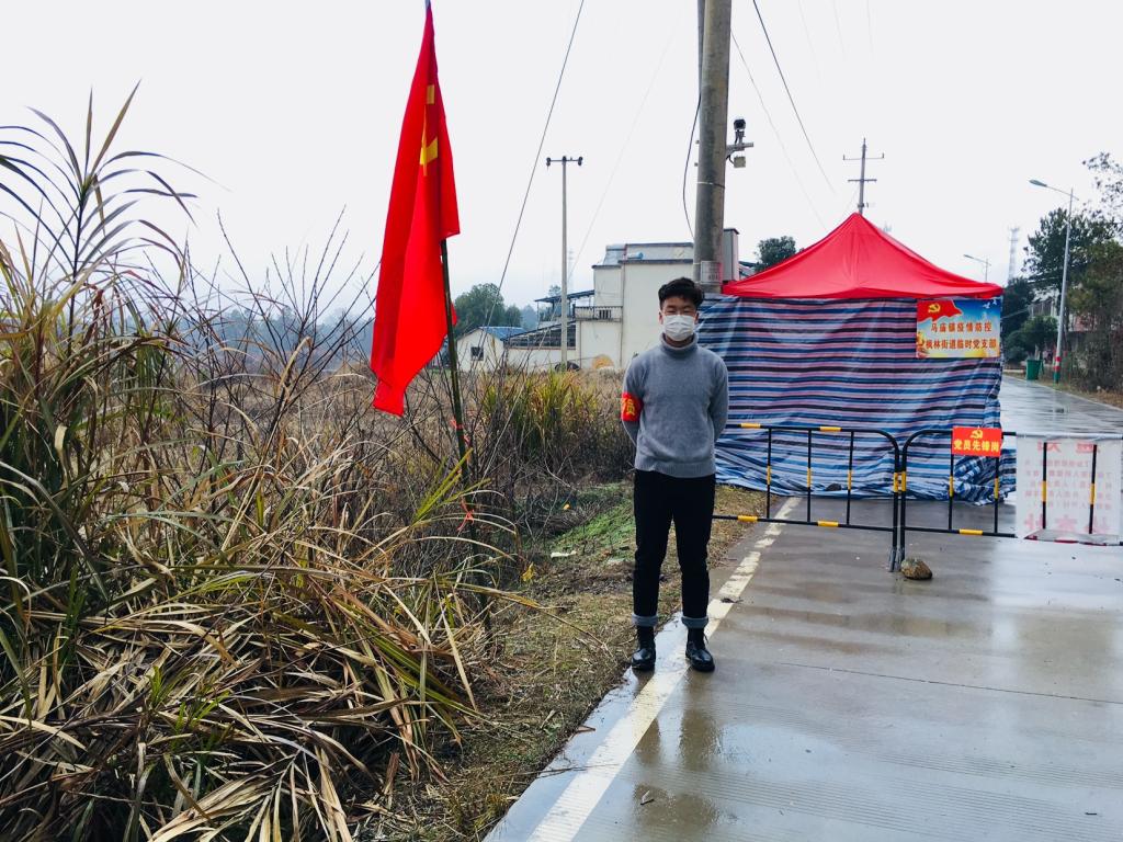 农业资源与环境专业181班何东东来自亳州市蒙城县,因新冠肺炎疫情肆虐,他的家乡为阻止疫情传播,实行了交通管制,自1月29日起设置防控关卡控制人员流动,他听闻家乡招募志愿者,自己又在资环学生会服务过同学,义无反顾的报名参加,积极投入到疫情防控工作中去,为家乡的疫情防控尽自己的一份力量。