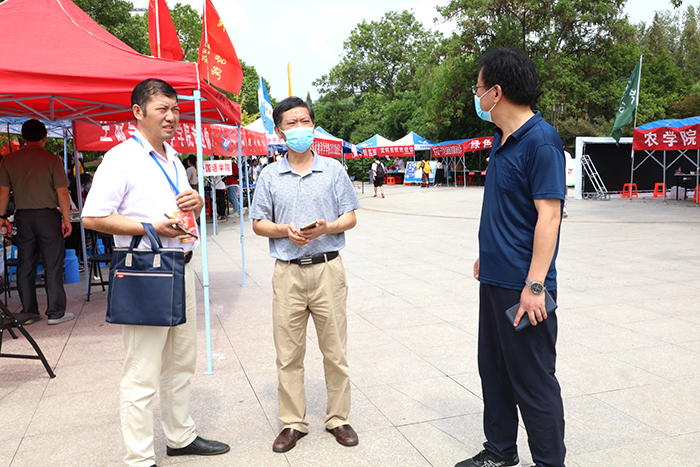 西区门口,2020级新同学在迎新工作人员的引导下有序入校报到。校领导现场听取关于今年学生入校流程、一站式报到及疫情防控物资准备情况的汇报,并就相关工作优化现场作出指导。校领导还逐一走访生命与健康科学学院、外国语学院、动物科学学院、食品工程学院、资源与环境学院、人文学院、农学院、机械工程学院等迎新点,仔细询问各学院新生录取数量和报到及针对困难学生的帮扶情况,对各学院认真细致的迎新工作给予了充分肯定,勉励他们继续把服务做好,妥善处理迎新工作中可能出现的问题,鼓励迎新师生以学生为本,精益求精,把迎新工作做细做实,高质量完成新生报到各项工作。