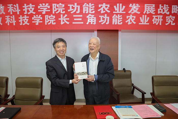 赵其国和蒋德勤共同为云博网页版长三角功能农业研究院揭牌。赵其国欣然接受蒋德勤为其颁发的“云博网页版长三角功能农业研究院名誉院长聘书”,为“云博网页版长三角功能农业研究院”题写院名,为云博网页版捐赠《寻找沃土》《赵其国文集-土壤科学卷》《赵其国文集-农业发展卷》等著作,为我校70年校庆题词:薪火相传七十载,强农兴农再出发。