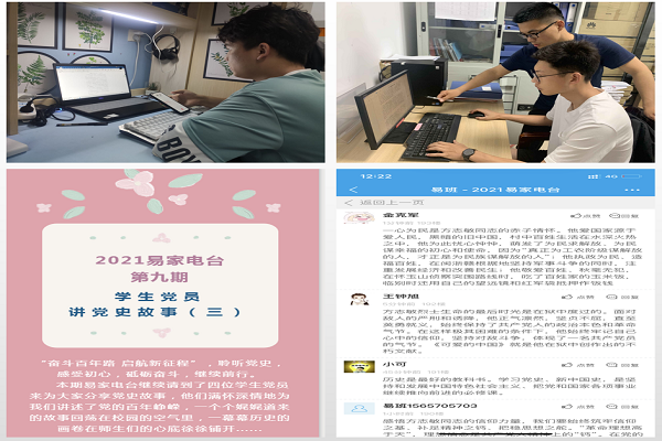 风雨兼程百年路,历史荣光永传承。为讲好党史故事,赓续精神血脉,激励广大同学述往思来、向史而新,知史爱党、知史爱国、知史奋进,近日,我校辅导员原创网络思政栏目“易家电台”组织“学生党员讲党史故事”特色系列节目正式开讲。