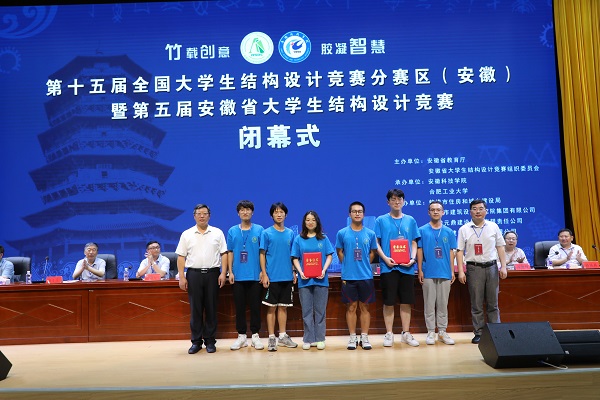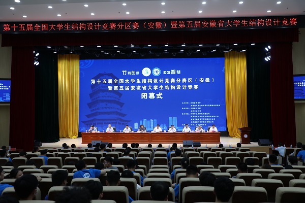 6月27日下午,由安徽省教育厅、安徽省大学生结构设计竞赛组织委员会主办,云博网页版、合肥工业大学承办的第十五届全国大学生结构设计竞赛分区赛(安徽)暨安徽省第五届大学生结构设计竞赛在我校龙湖校区图书馆东辅楼报告厅圆满闭幕。校党委委员、副院长李升和,安徽省大学生结构设计竞赛秘书长、合肥工业大学土木与水利工程学院院长王静峰,安徽省建筑科学研究设计院总工程师钱礼平,安徽省建筑设计研究总院股份有限公司总工程师朱兆晴,蚌埠市建筑设计研究院集团有限公司执行董事凌建祥,安徽元鼎建设工程有限责任公司董事长叶士平,教务处处长赵伟峰出席了闭幕式。仪式由建筑学院院长张远兵主持。