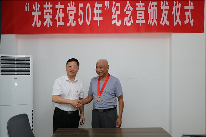 张树杰发表了获奖感言。他用激动深情的语言感谢党组织亲切关怀。在建党101周年之际,获得“光荣在党50年”纪念章,心情非常激动。自己生在旧社会,长在红旗下,从小受党的教育培养,深感没有共产党,就没有今天的幸福生活,也不可能从一个农村孩子成长为一名大学生、大学教育工作者。“光荣在党50年”纪念章是荣耀、是激励、是敬仰、是党的号召,体现了以习近平同志为核心的党中央的亲切关怀,蕴含着作为一名共产党员的“无限荣光”。今后,要时刻牢记入党为了什么,坚守初心使命,永远听党话、跟党走,将余生的精力奉献给党的教育事业,为学校建设发展贡献余热,努力为党旗增光添彩。(特约通讯员:许丽 摄影:陈宝 审核:时乾 编辑:张威)