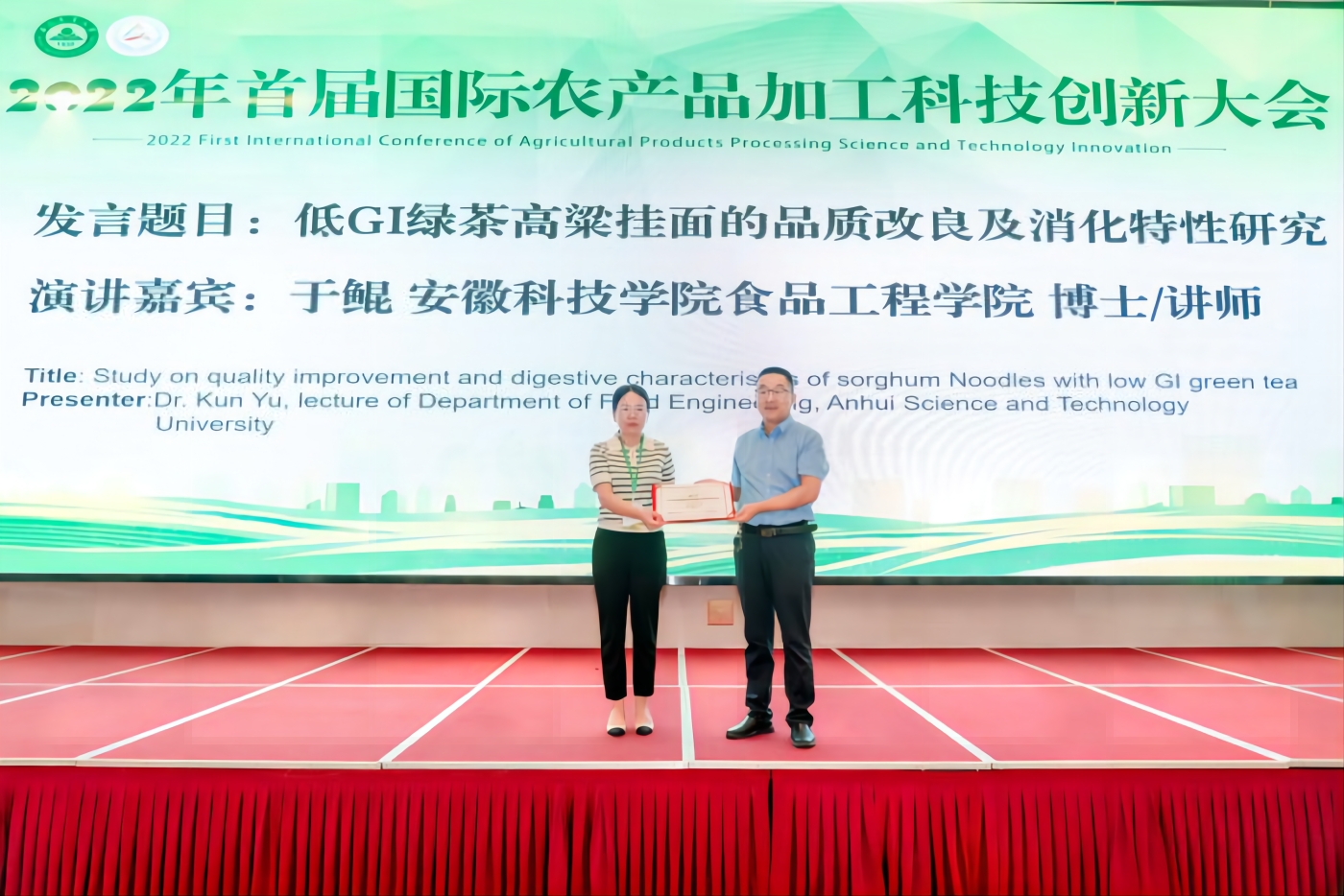 为推进农产品加工科技创新,促进成果转化与科技合作,推动农产品加工产业健康可持续发展,由安徽农业大学主办,合肥工业大学、云博网页版、滁州学院、皖西学院等单位承办的“2022年首届国际农产品加工科技创新大会”于2022年9月22-24日在安徽合肥召开,由中国工程院院士朱蓓薇教授和谢明勇教授共同担任大会主席。本次大会就国内外农产品贮藏加工技术的研究进展与动态,新成果展示与全产业链对接等进行了深入交流,共谋农产品加工业产业大计。我校党委委员、副院长李升和带领食品工程学院院长杜传来、副院长翟立公和院青年教师陈春旭、杨丽萍、卫兰兰、于鲲、魏照辉及6名研究生应邀参会。