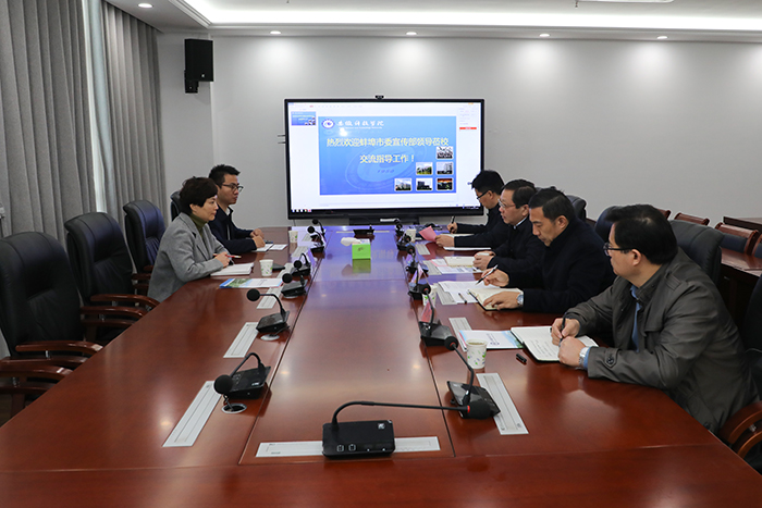 11月17日上午,蚌埠市委宣传部副部长、市文联党组书记蒋敏娣,对外宣传和媒体融合发展科科长李斌到我校龙湖校区沟通对接校部战略合作相关工作。校党委委员、副院长黄远友主持交流会,党委委员、党委宣传(统战)部部长何永勇,党委宣传(统战)部副部长姚文均,人文学院副院长牛永辉参加座谈交流。