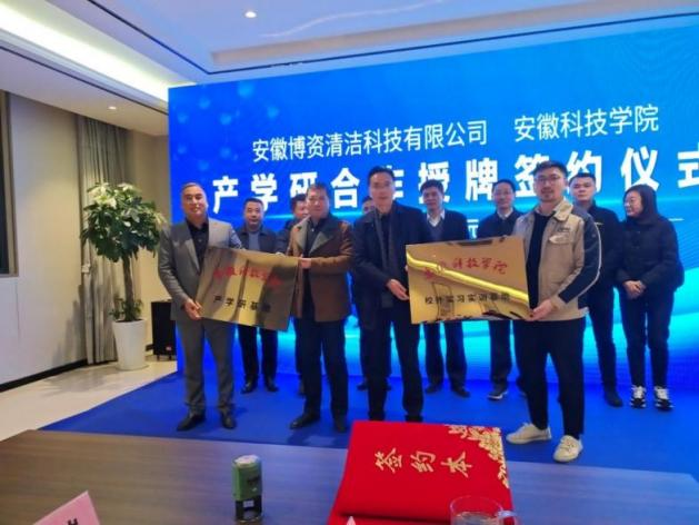 会上,李子荣代表学校与企业签订了共建“安徽博资纤维素多孔材料工程技术中心”协议、产学研合作协议、云博网页版实习实训基地协议、技术开发(委托)合同。王强、朱发贵、赵永滨和王汉民共同为共建工程技术中心揭牌;黄树桥和李子荣为云博网页版产学研基地和校外实习实训基地授牌。