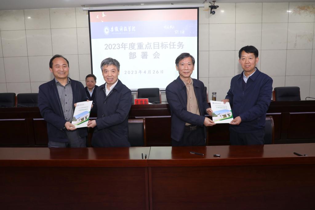 为推进学习贯彻习近平新时代中国特色社会主义思想主题教育走深走实,促进学校各项事业高质量发展见行见效,4月26日下午,学校在凤阳校区会议中心一楼报告厅,召开单位(部门)2023年度重点目标任务部署会,校党委书记蒋德勤,党委副书记、院长李震,党委委员、副院长黄远友出席会议,各单位、各部门主要负责同志参加会议。会议由李震主持。