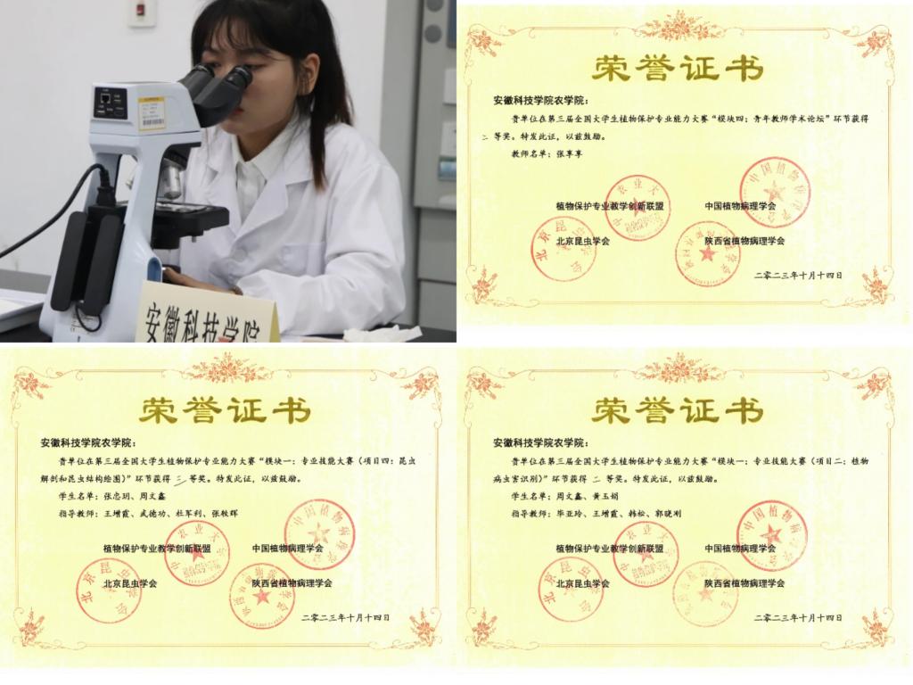 张享享老师荣获青年教师学术论坛模块二等奖,周文鑫和黄玉娟两位学子(指导老师:毕亚玲、王增霞)获“专业技能大赛”模块“植物病虫害识别”项目二等奖,张忠月和周文鑫两位学子(指导老师:王增霞、武德功、杜军利、张轶辉)获“昆虫解剖与结构绘图”项目三等奖,我校荣获团体优秀奖和优秀组织奖。