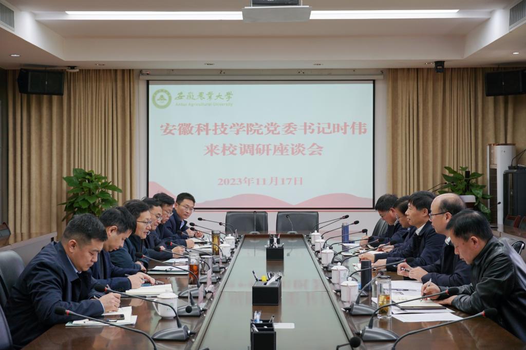 11月17日上午,校党委书记时伟率党委委员、副院长王孝义及党委(校长)办公室、科研处、教务处负责同志,赴安徽农业大学考察交流学科专业调整与现代产业学院建设、新农村发展研究院管理与运行机制、科研管理与横向项目激励机制、科研人员赋权改革等工作,受到该校党委书记张庆亮、党委常委、副校长操海群及相关对口部门的热情接待。