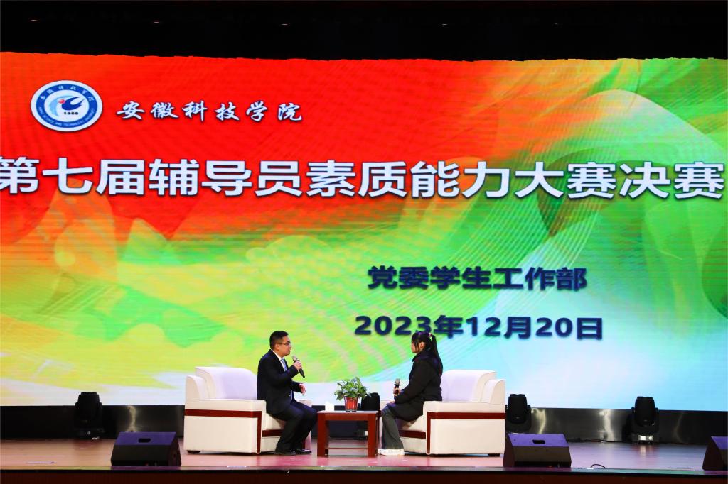 12月20日下午,我校第七届辅导员素质能力大赛决赛在凤阳校区大学生活动中心成功举办。校党委书记时伟,党委副书记、院长李震为获奖代表颁奖,党委委员、副院长黄远友亲临决赛现场指导。安徽财经大学党委学工部部长、学生处处长张亚,蚌埠学院党委学工部部长、学生处处长赵思莉,我校马克思主义学院院长张德化担任大赛评委。经过初赛、复赛,10名进入决赛辅导员参赛,百余名专职辅导员到场观摩。