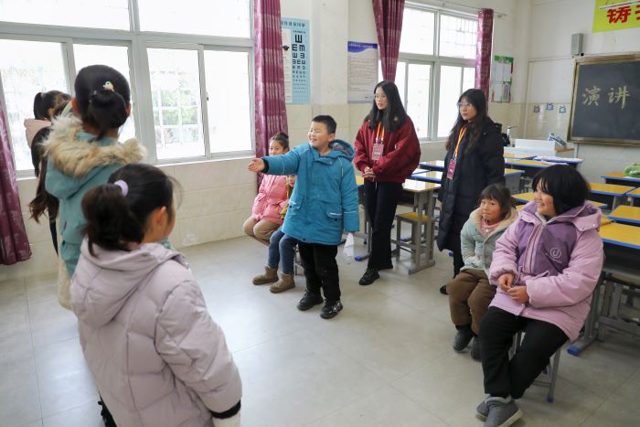班里很多小学员都是小岗村的留守儿童,父母不能陪在他们身边,每周在声乐交流班和老师同学们一起唱歌、跳舞是他们最期待的事情。王钱淼和范君鑫还给小学员们准备了许多互动的小游戏,比起“老师”这个称呼,他们更喜欢被喊成“哥哥姐姐”,大学生和小朋友“大手拉小手”,在小岗村的教室里奏响处于他们自己的快乐乐章。
