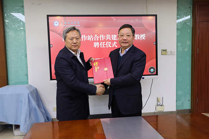 会上,黄远友代表学校向潘灿平院士的到来表示热烈的欢迎和衷心的感谢。他简要介绍学校基本情况,指出院士工作站的建立是汇聚高层次人才交流、点燃创新思维火花的基石,相关部门和学院一定要做好周到服务, 认真谋划院士工作站合作共建,统筹部署对接工作,不断提升学校的办学层次和发展水平。黄远友代表学校为潘灿平院士颁发了特聘教授聘书。