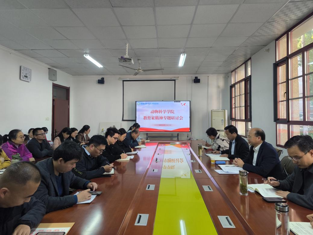 为弘扬教育家精神,涵养高尚师德师风,10月23日下午,动物科学学院在学院会议室召开教育家精神专题研讨会。校党委委员、副院长王孝义莅临指导,学院党政领导、科级以上干部、各系室负责人、教师代表参加会议,会议由动物科学学院党委书记程斌主持。