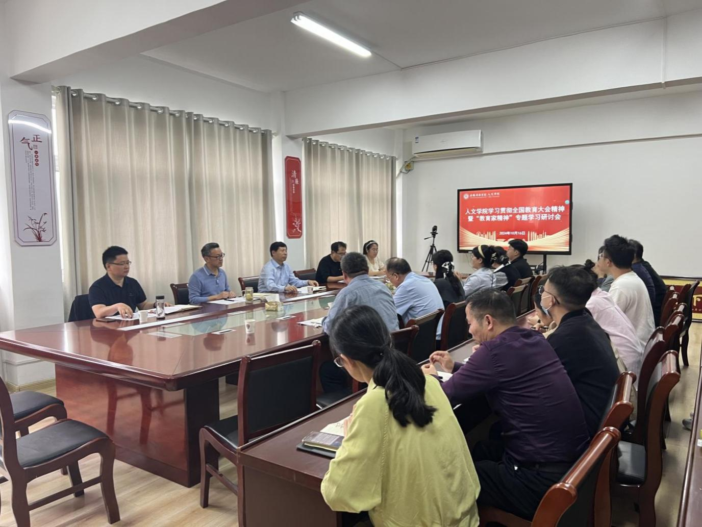 10月16日下午,人文学院在学知楼324会议室召开学习贯彻全国教育大会精神暨教育家精神专题学习研讨会。校党委书记时伟莅临指导。研讨会由人文学院党委副书记、院长李晓东主持。学院全体教职工和汉语言文学专业学生代表参加。