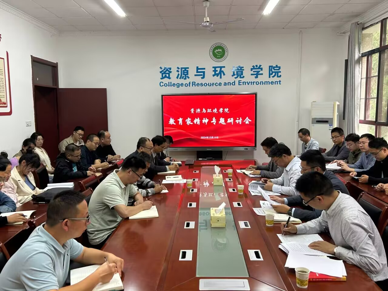 10月16日下午,资源与环境学院在学院会议室召开弘扬教育家精神专题研讨会。校党委委员、副院长李升和出席会议。资源与环境学院党政领导以及全体教职工参会,会议由学院党委副书记沈树周主持。