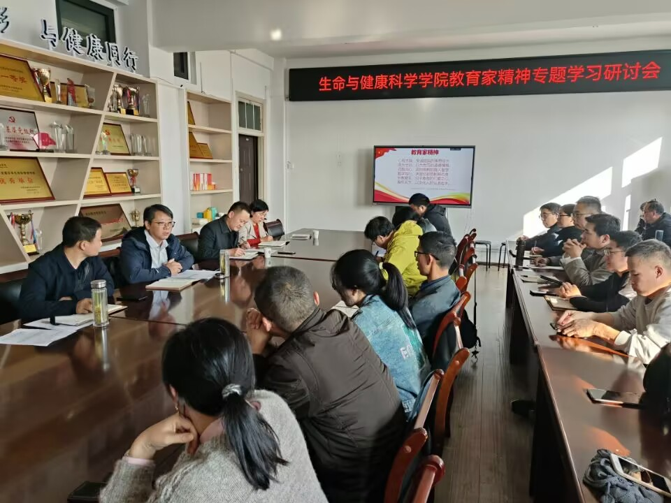 10月23日下午,生命与健康科学学院在学院会议室召开教育家精神专题学习研讨会。校党委副书记、院长李升和出席会议。生命与健康科学学院党政领导和全体教职工参加会议,会议由生命与健康科学学院党委副书记(主持工作)张传德主持。