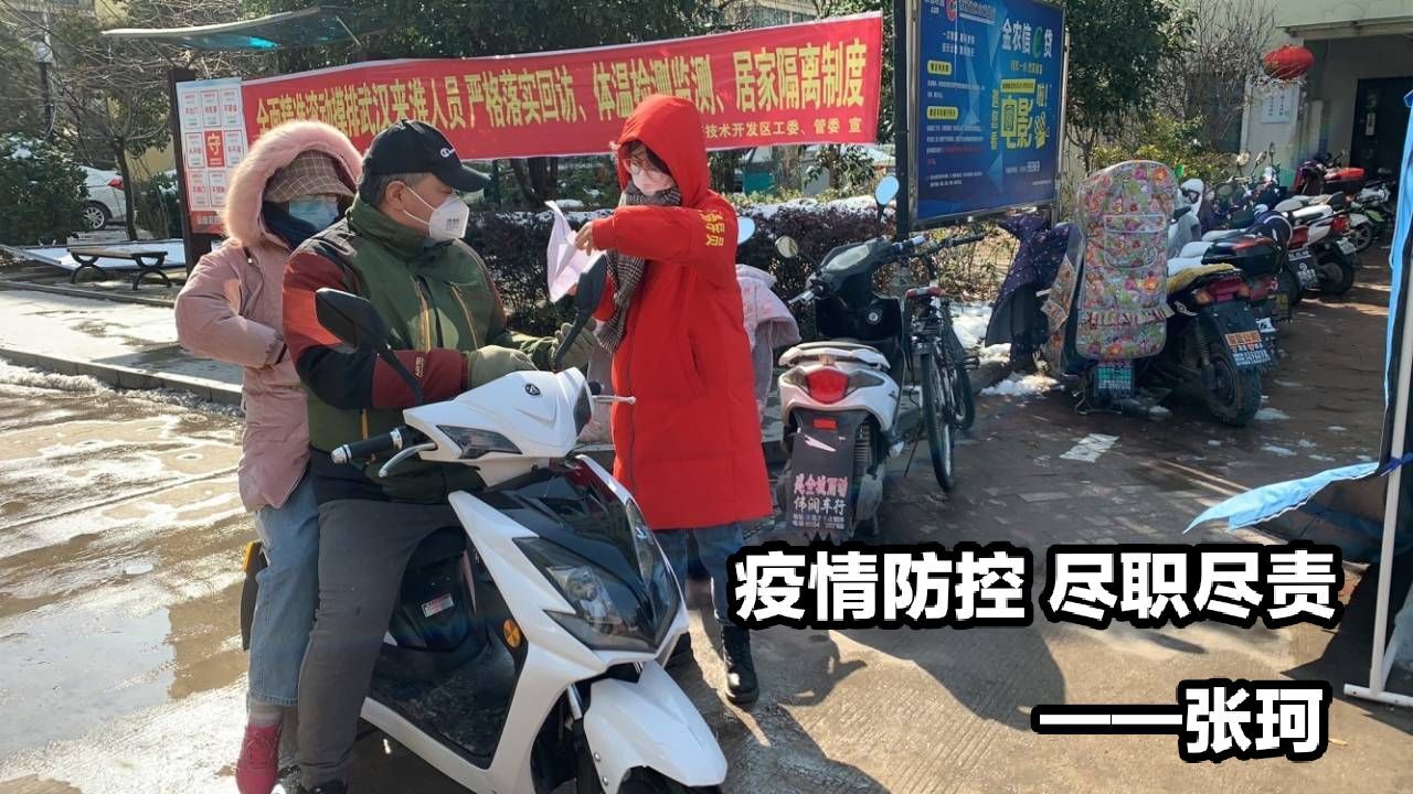 守初心,抗疫情。张珂,建筑学院城乡规划专业学生党支部党员,放假在家时因发低烧,在第一时间到医院进行多项检查初步确认自己非疑似患者后,进行自我隔离治疗。当她得知疫情扩散,便筹划着在身体恢复后做一些力所能及的事情。于是,她2月16日在所处的淮南市洛西社区报名参加志愿者活动,主动请求负责协助居民进行出行通行证检查以及通行证办理引导工作。这期间,无论多累,她从未迟到,热心服务。