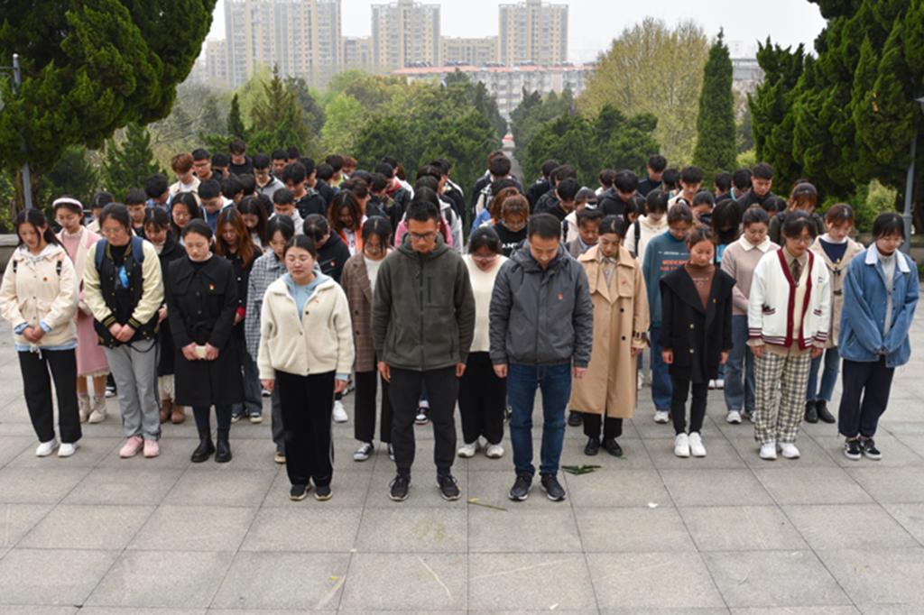 清明祭英烈,精神代代传。为了弘扬爱国主义,培养家国情怀,缅怀为了祖国的解放和人民的安宁而英勇牺牲的烈士,瞻仰他们的丰功伟绩,4月2日中午,动物科学学院组织师生前往凤阳县烈士陵园开展“学党史 祭英烈”活动。动物科学学院党委副书记汤帅,党政办主任、团委书记李焱,专职辅导员胡文丽,18-20级班长、团支书,部分学生会干部,青年志愿者协会以及全体学生党员参加祭扫活动。