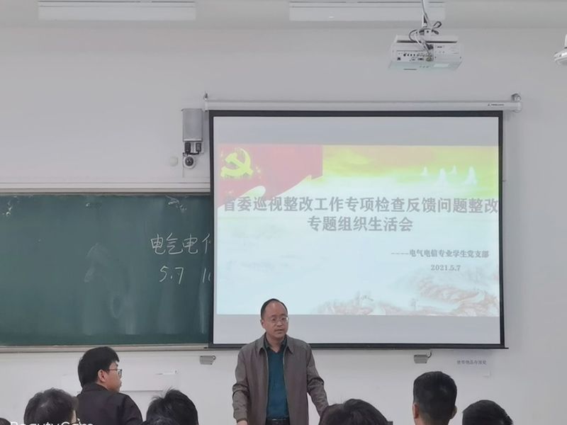 为进一步发挥基层党组织战斗堡垒作用和党员先锋模范作用,在电气与电子工程学院党委统一部署下,电气电信专业学生党支部于5月7日下午4点,在致知楼C205开展省委巡视整改工作专项检查反馈问题整改专题组织生活会。会议由支部书记洪乃羽主持,学院党委副书记尚磊及支部党员参加了会议。
