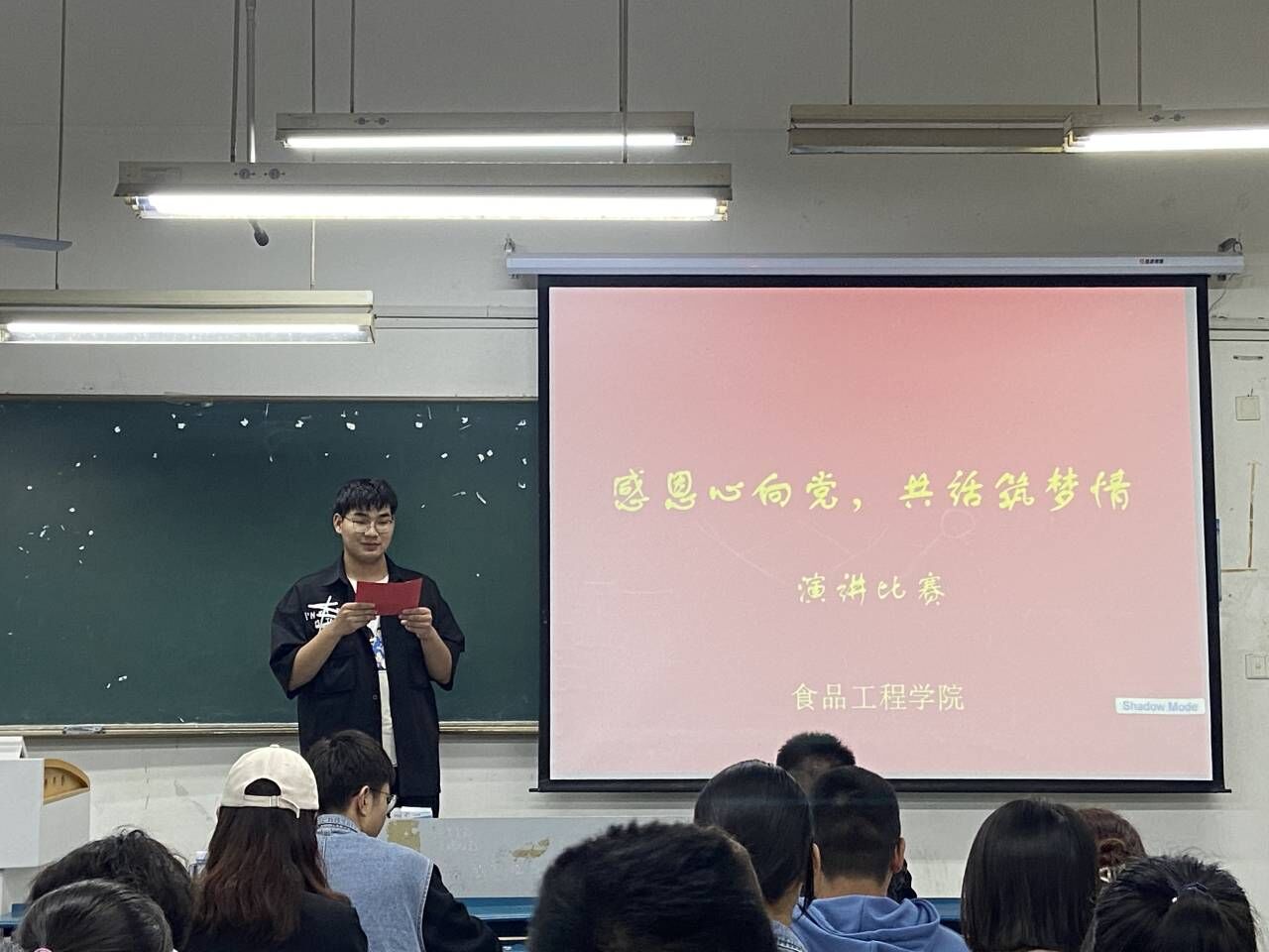 为深入宣传贯彻党和国家有关家庭经济困难学生资助政策,充分发挥国家资助政策体系育人和导向功能,加强对受资助学生感恩和励志教育,深化推进社会主义核心价值观建设,进一步继承和发扬爱国主义精神,激发学生奋发成才、报效祖国的热情。根据食品工程学院党委安排部署,5月19日下午,食品工程学院于求知楼B104举办“感恩心向党 共话筑梦情”主题演讲比赛。