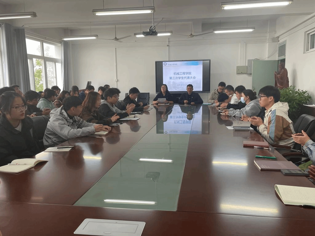 2021年11月20日下午,机械工程学院于学院会议室召开机械工程学院第三次学生代表大会。机械工程学院党委副书记、纪委书记张程、学院团委副书记谭博文、辅导员孟凡生及全体学生代表出席此次会议,会议由谭博文主持。