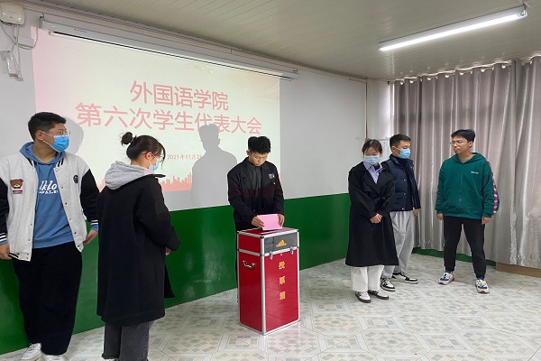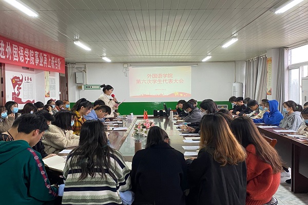 11月21日上午,外国语学院在学院会议室召开外国语学院第六次学生代表大会。学院团委副书记宋兵兵、专职辅导员张薇薇出席大会,来自各班级的学生代表参会,本次大会由宋兵兵主持。