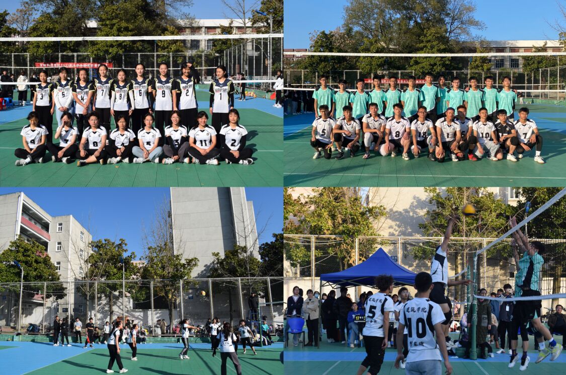 首先开赛的是女排决赛,比赛双方为建筑学院女排队和资源与环境学院女排队。赛前,建筑学院女子排球队不断练习,充分热身,做好决战准备。在比赛中,她们挥舞着双臂,用力击打排球,眼神坚定,灵活运球,反应敏捷,相互配合,不放过任何得分机会。虽是客场作战,仍然镇定自若,充满斗志。排球运动员们在赛场上充分发扬顽强拼搏、众志成城、坚持到底、永不言败的体育精神。最后建筑学院女子排球队憾负资源与环境学院女子排球队,获得了云博网页版大学生排球联赛女排亚军。