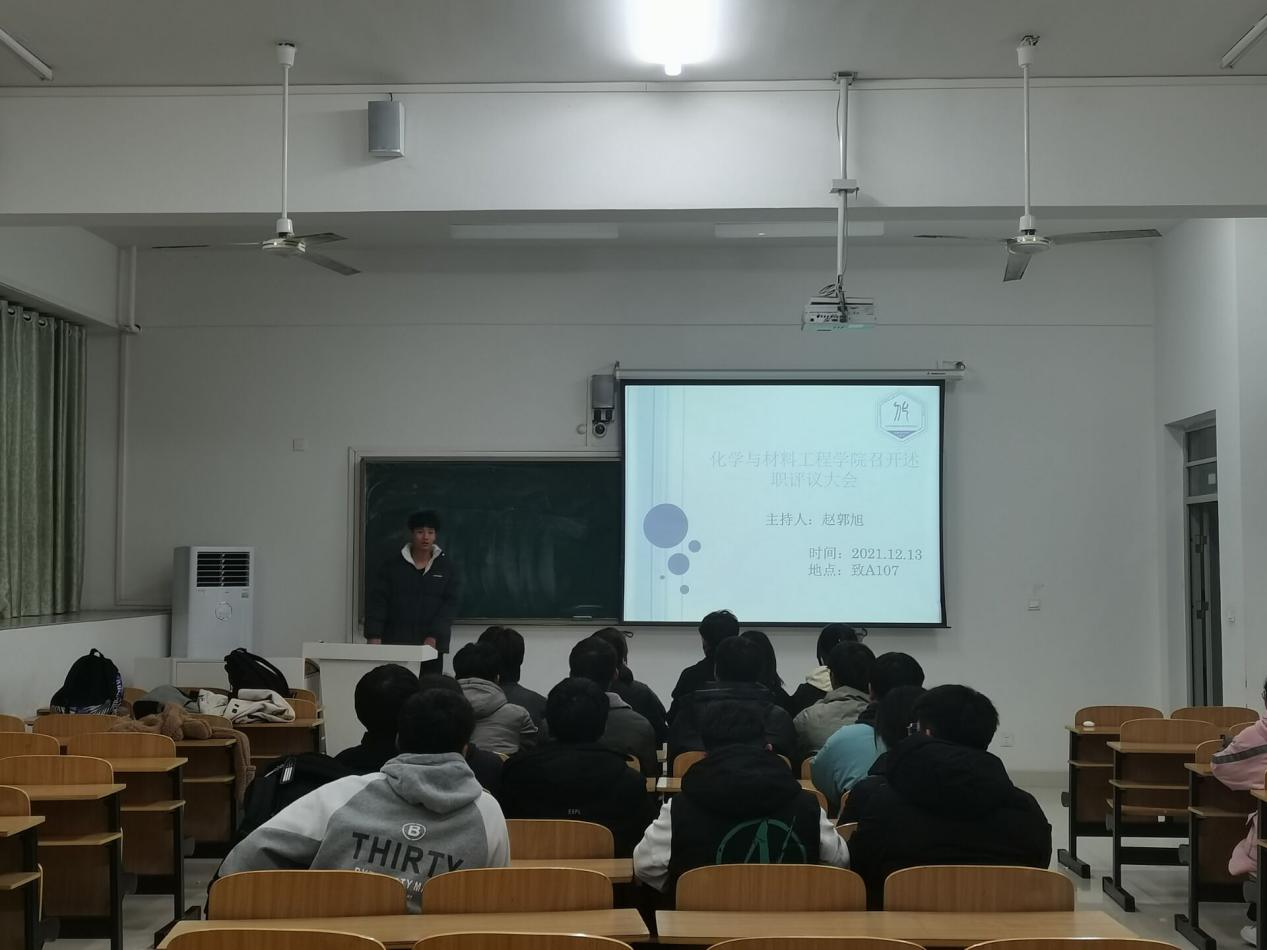 为切实提高学生会工作水平,激发学生会的组织活力和发展动力,依据《云博网页版学生会述职评议制度实施条例(试行)》规定,化学与材料工程学院于12月13日在致知楼A107教室召开学生会期中述职大会。学院专职辅导员李潮升老师、学生会主席团成员范佳龙以及学生会成员参会,会议由学院学生会主席团成员赵郭旭主持。