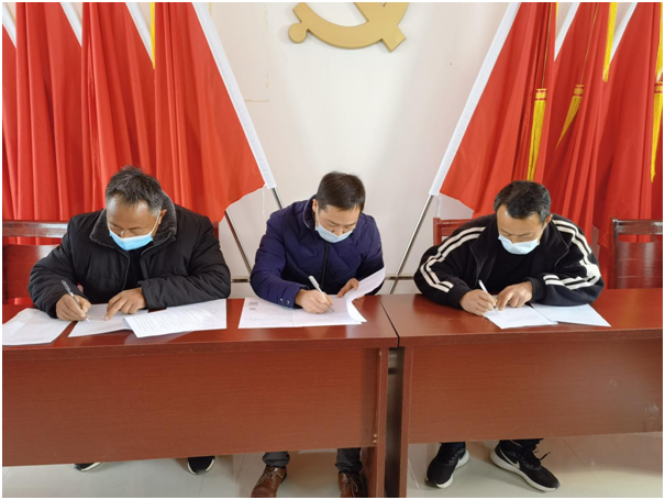 在沙沟村会议室,土楼村村主任王志峰和沙沟村副书记孙有利分别介绍了土楼村和沙沟村的情况,表达了对科技技术的需求,希望能得到学校在科技种植方面的技术支持。研究生党支部书记桑宏庆介绍了学校及食品工程学院在事业发展、人才培养、服务乡村振兴方面所取得的成绩,表示希望加强食品工程学院与沙沟村和土楼村的联系,推进双方在农业种植、人才培养等方面的合作,推动乡村经济更好的发展。在双方的见证下,食品工程系教工党支部书记郑海波与土楼村和沙沟村分别签订了《科技服务合作协议》,城建学院成彦丽老师与土楼村签订了《土地租赁意向书》。食品工程系党员郑海波作为挂职科技特派员在土楼村和沙沟村进行了挂牌。
