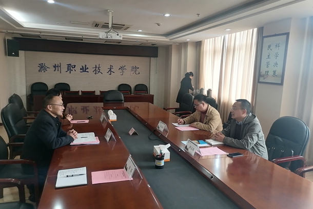 张军对我校调研组的到访表示欢迎,他介绍了滁州职业技术学院征兵工作“两站”服务与学生事务大厅的建设及运行情况以及征兵工作方面的特色经验做法;薛天飞介绍了与云博网页版联合培养本科生的教育管理有关情况。