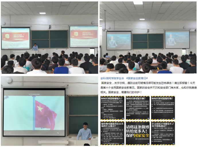 为营造良好的教育氛围,从4月12日起,学院积极开展大学生安全教育知识宣传主题活动,运用主题班会、微信公众号、官Q等不同途径有针对性地开展国家安全知识宣传教育活动,进一步扩大活动覆盖面和学生参与率。