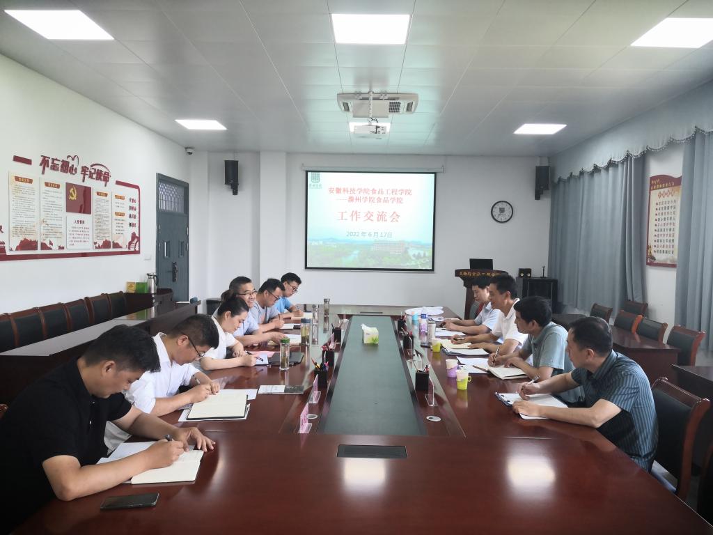 在交流会上,双方就“党建创新工作、学科团队打造、一流专业建设、学生教育管理、毕业生就业工作”等多个主题进行了深入的经验交流。叶高介绍了学院围绕中心抓抓党建的典型经验,强调党建和业务工作不能“两张皮”,要“一盘棋”,学院党政领导要同心同德、同频共振、同心协作、同向发力、同甘共苦,心往一处想,劲往一处使,凝聚全院全员之力,形成人人爱院、人人干事、人人受益的良好氛围。学院工程教育专业认证工作就是在学院党委的坚强领导下,在学院党政领导干部的共同努力和全院师生的积极参与、辛勤付出下才取得良好成绩。付光玺强调党建工作要有抓手有载体,必须围绕学校学院中心工作任务开展。滁州学院生物与食品工程学院在学院党建和发展方面所取得的突出成绩让人印象深刻,他表示,将认真学习兄弟学院在党建工作、学科专业建设、师资队伍、学生教育管理等方面的典型经验,尤其是工程教育专业认证方面的优秀做法,统一思想,认真谋划,明确责任,建立机制,积极提升专业建设水平,促进学院高质量发展。