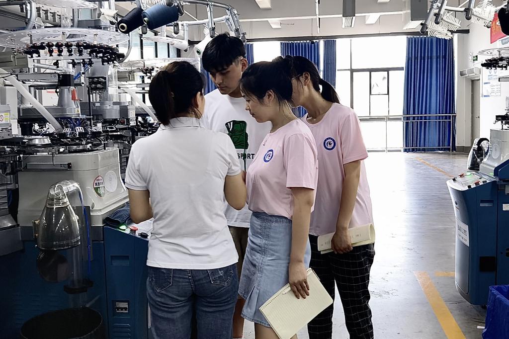 安徽尧舜智能袜业公司是集研发、生产、销售、科研于一体的专业针织袜类集团雏形,2020年被评为全国脱贫攻坚先进集体,袜产业已成为尧渡袜业特色小镇的特色产业。在公司工作人员的带领下,团队成员们参观了生产车间。织造车间内一台台智能织袜机“嚓嚓嚓”运转,每隔一两分钟便诞生一只袜子雏形;工人坐在缝头机前,动作娴熟地快速缝制;冒着热腾腾水蒸气的定型机正对一双双袜子消毒定型……从织造到缝头,从定型到包装,经过一道道严格质检后,一双双袜子漂洋过海,走向世界。