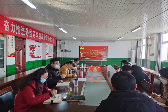 1月5日上午,外国语学院召开2022年度基层党支部书记抓党建述职评议会。学院党委委员、各党支部书记、支部委员和师生代表参加会议。会议由学院党委书记蔡为青主持。