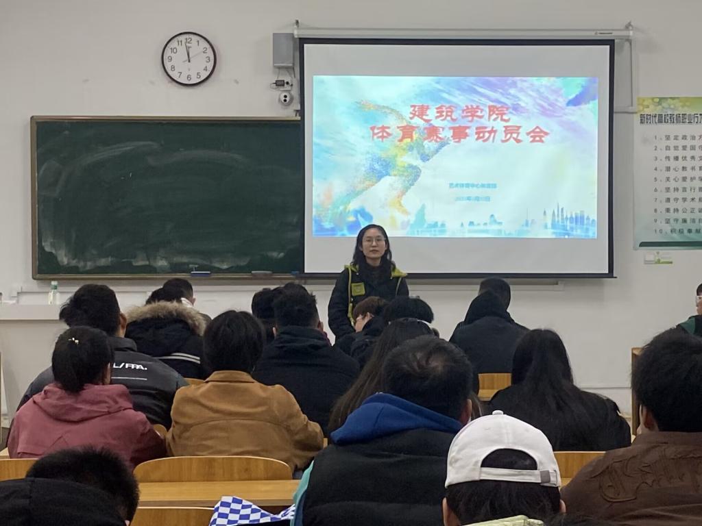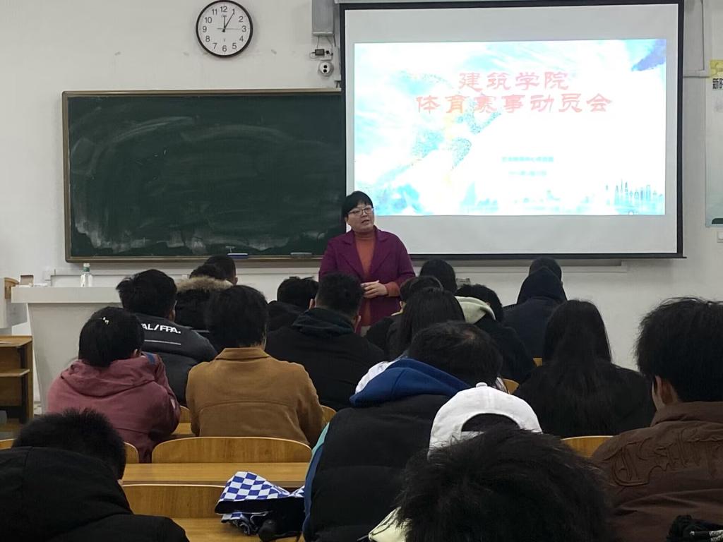 追风赶月莫停留,平芜尽处是春山。3月22日中午,建筑学院在致知楼B105召开了体育赛事赛前安全教育会议,学院党委副书记、纪委书记谢宜勤,辅导员武辉、王明哲,篮球队、排球队队员及学院体育部工作人员参加会议。会议由团委书记沈德艳主持。