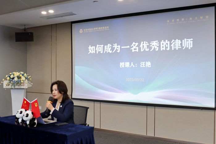 盈科(蚌埠)律师事务所党支部书记汪艳代表律所对人文学院“盈科班”师生表示热烈欢迎。汪艳带领同学们参观了律所办公环境和硬件设施,并通过播放宣传片介绍了盈科文化及律所概况。