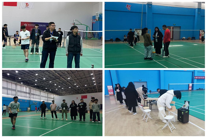在研究生羽毛球赛场地,分会成员早早来到比赛现场,开始准备工作,用热情和耐心为赛事提供优质服务。分会成员在赛场根据要求分别开展协助裁判、编排场次和人员、比赛记分、清扫场地等工作。各工作岗位皆可见到分会成员忙碌的身影。