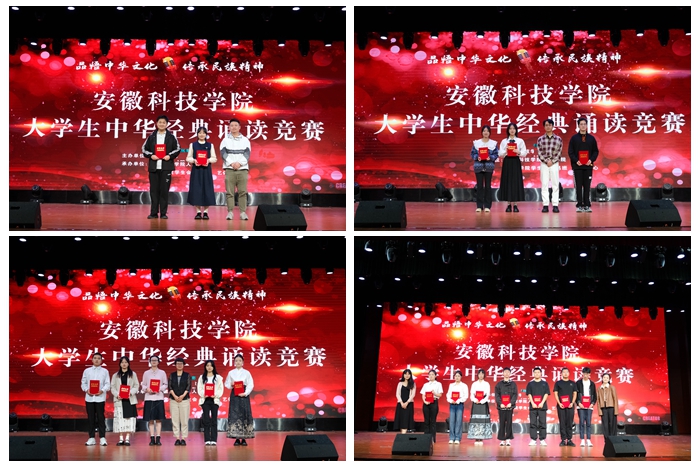 为贯彻《教育部等九部门关于开展第26届全国推广普通话宣传周活动的通知》的文件精神,助力推广普通话,发挥语言文字的浸润、助力作用,激发青年大学生奋斗精神与爱国情怀,9月25日下午,由教务处主办、人文学院承办的云博网页版大学生中华经典诵读竞赛决赛在大学生活动中心成功举行。蚌埠市广播电视台主持人吕彪,凤阳县融媒体中心新闻部编辑记者胡松、马克思主义学院教授王凤杰、学生处康佳蓉、人文学院专业课教师曹宋艳担任此次比赛评委。