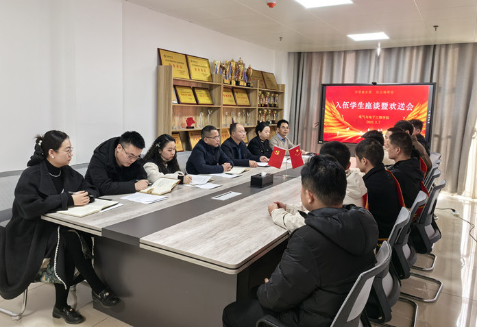 为促进入伍毕业生坚定理想信念,安心服兵役,走好军旅路,电气与电子工程学院于3月7日在西附楼308会议室召开2025年春季入伍学生座谈暨欢送会。学院党委副书记、院长夏显明,党委副书记、纪委书记尚磊,全体毕业班辅导员及春季入伍学生参加了会议,部分拟秋季入伍的学生参加了座谈。会议由辅导员陈更强主持。