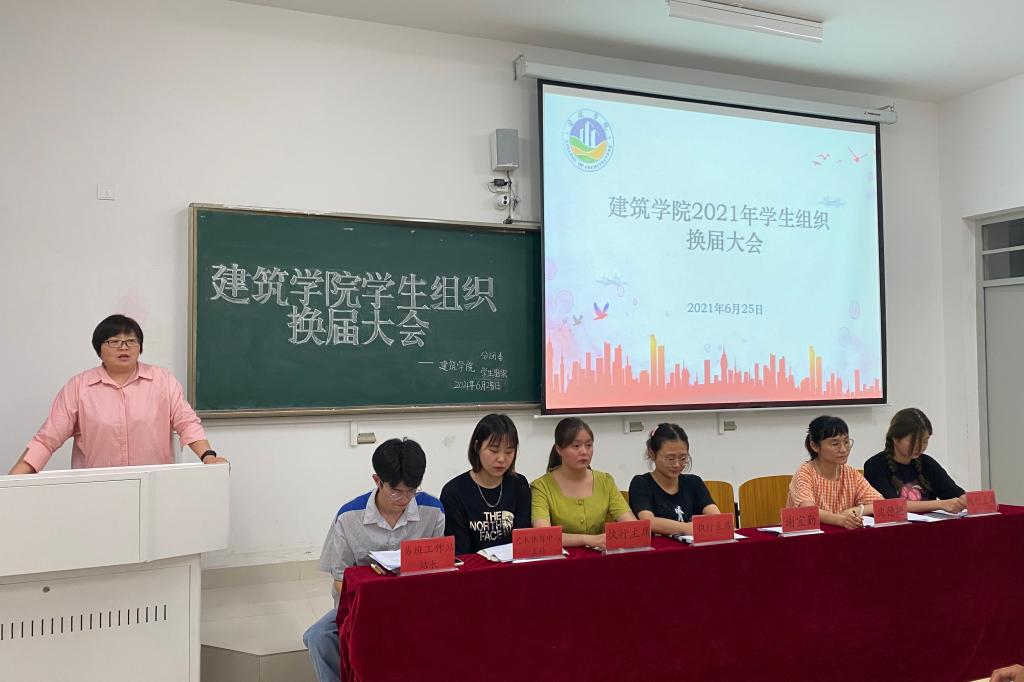 6月25日,建筑学院在致知楼B208举行2021年学生组织换届大会。建筑学院党委副书记谢宜勤、团委书记沈德艳,学生会、易班工作站、艺术体育中心全体成员参加了本次大会。