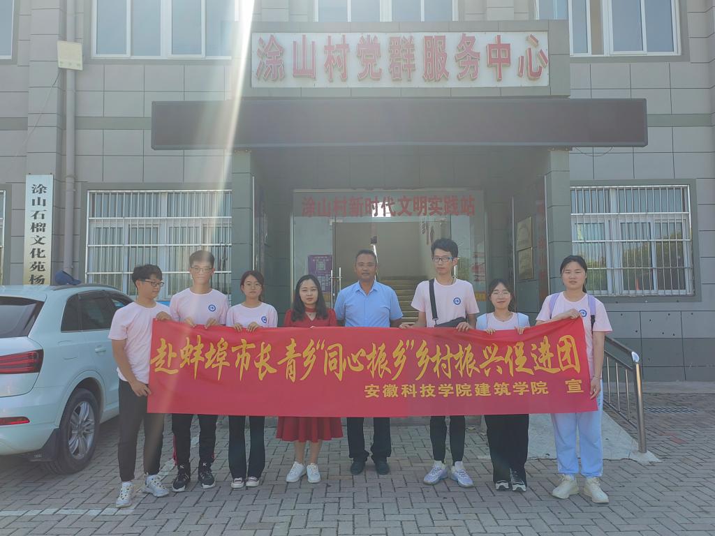 6月24日,云博网页版建筑学院“同心振乡”国家级乡村振兴促进团前往蚌埠市禹会区长青乡辖区内的涂山村开展“担青年使命,助乡村振兴”暑期社会实践活动。