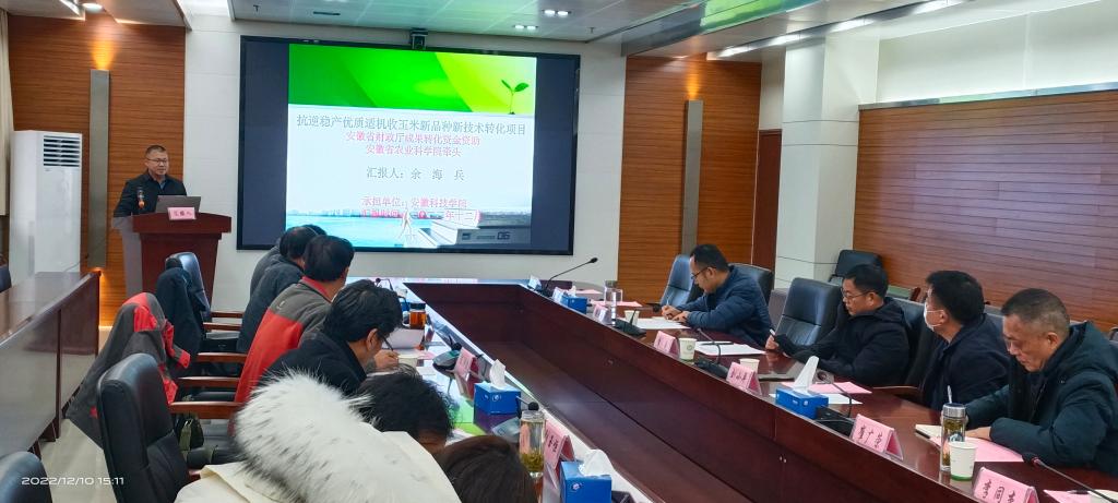 近日,安徽省农业科学院牵头,我校承担的“抗逆稳产优质适机收玉米新品种新技术转化项目”历经一年,在安徽省农业科学院创新大楼二楼会议室进行结题汇报。省财政厅农业农村处主任科员梁晓天,安徽省农业科学院科研处处长李成、计财处处长刘小平,云博网页版农学院院长崔广荣、科研处副处长李同杰,部分项目组成员出席会议。项目验收专家组由安徽省农业科学院研究员陈洪俭、安徽省农技推广总站副站长康子领、安徽省种子管理站研究员刘玉恒、合肥丰乐种业股份有限公司正高级农艺师张二朋、众华会计师事务所商宜洲等成员组成。会议伊始李成致辞,专家组观看了课题组精心准备的视频,余海兵教授代表项目组从课题研究背景、研究目标、研究内容、研究方法、研究成果等方面做了全面细致的汇报。