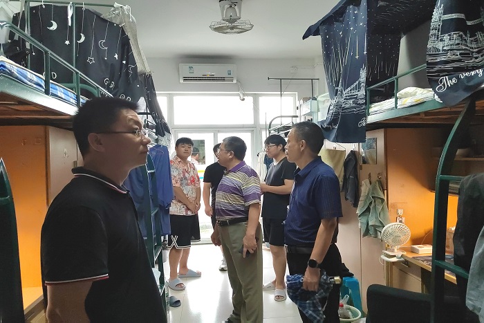 每到一个宿舍,何世潮一行都与学生进行深入交流,了解同学们的学习、生活与科研情况,提醒同学们要利用好暑期宝贵时间,认真复习备考,完成相关科研实验,积极参与暑期社会实践,不断提升自身综合素质;提醒同学们搞好寝室卫生,时刻注意用电安全,谨防电信诈骗,严禁下水游泳;提醒同学们要注意锻炼身体,健康饮食、科学作息;提醒同学们加强与辅导员老师的信息沟通、情况反馈。
