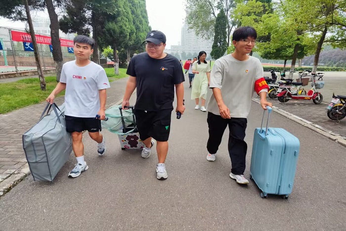 同志们在迎新工作中积极主动,引导新生顺利办理入学报到、宿舍登记等手续。党支部党员始终坚持在迎新志愿第一线为新生搬运行李,身上的衣服汗湿了一遍又一遍。预备党员孟浩宇说:“作为一名预备党员要向优秀党员同志看齐,要踊跃参加志愿活动,在奉献中实现自身价值。”