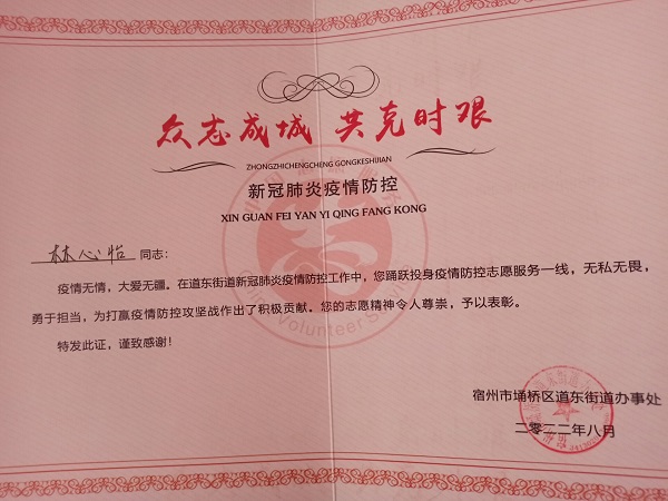 将近一个月的志愿服务工作,林心怡无所畏惧,始终坚持在抗疫一线,用实际行动展现了青年大学生的社会责任和使命担当。(特约通讯员:郑玉莲 审核:张轶辉)