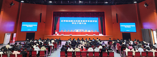 为增进广大学生干部对学校和学院重点工作的了解,熟悉对学生的相关要求,全力做好本科教育教学审核评估等重点工作,进一步加强学生干部队伍建设,提高学生干部素质能力, 3月24日上午农学院在大学生活动中心召开迎接本科教育教学审核评估学生干部大会。农学院党政领导、全体辅导员,团委、学生会等学生组织,各本科和研究生班级主要学生干部等参加会议。会议由农学院党委副书记张轶辉主持。