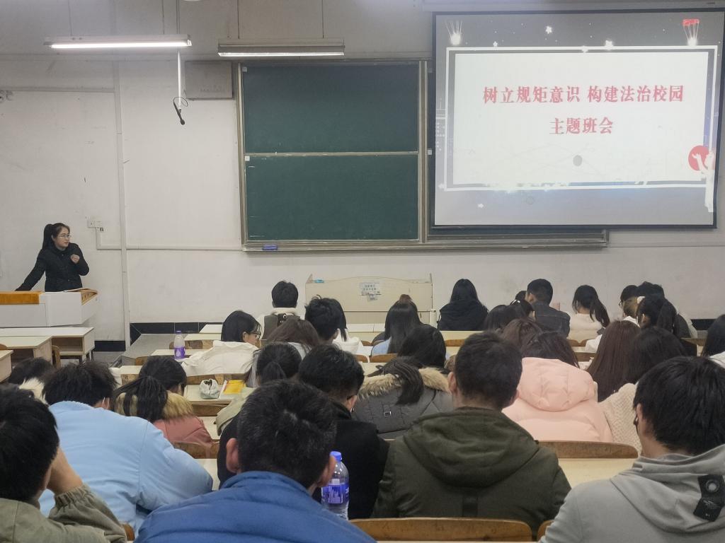各辅导员结合当下大学生法治观念淡薄、学生矛盾纠纷多发等实际情况,分析了部分学生在规矩意识、法治思维和法治素养等方面存在的问题,要求同学们要重学习、守规矩、严纪律、提素养。