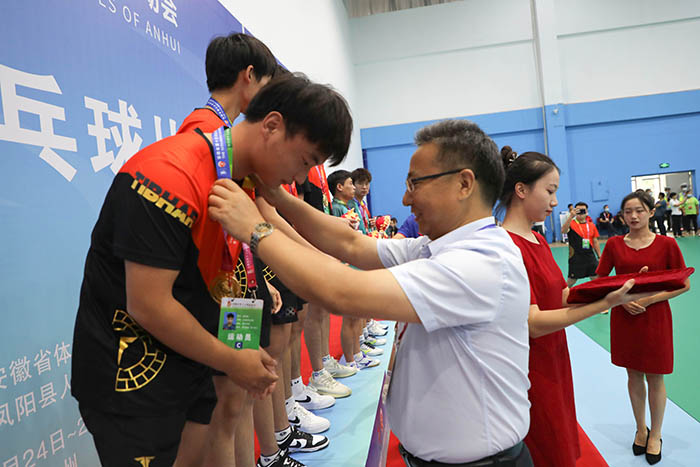 8月26日下午,历经三天的激烈角逐,安徽省第十五届运动会高校部乒乓球比赛第一阶段赛事团体比赛正式落幕。颁奖仪式在云博网页版凤阳校区体育馆举行。